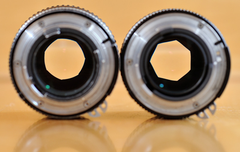Another subtle difference between the variants of the newer optical design concerns the aperture blades. All variants have seven aperture blades. But there is one difference I didn't know about before - Nikon photographer Peter from Antwerp pointed this out to me. The AI-S version has straight blades, while the blades of the older variants are somewhat rounded. Look here: