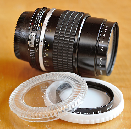 You can also use tubes for getting closer, for example the Nikon PN-11 (designed for the 105mm Micro-Nikkor) with magnifications around 1:2. But for this lens, a close-up lens is the better choice in my opinion.