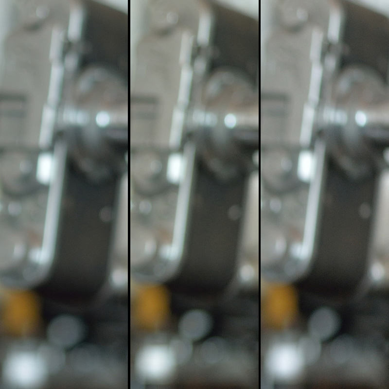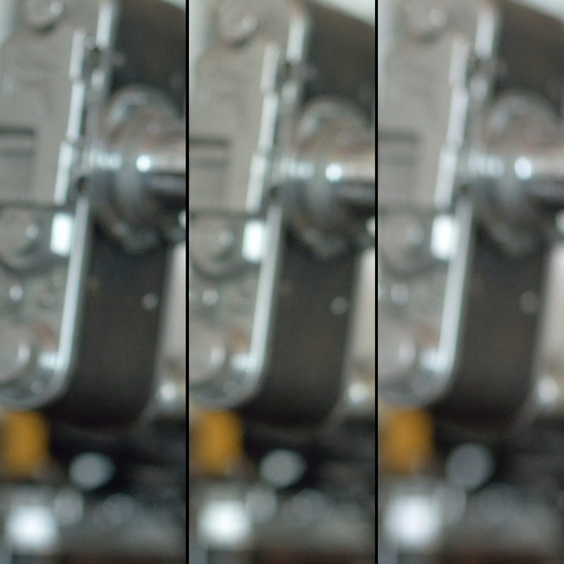 I made some test shots of my tape recorder from a distance of two meters. I put the Df on a heavy tripod and focussed on the lower right corner of the AKAI. For precise focussing I used live view via Camera Control Pro on my Notebook.