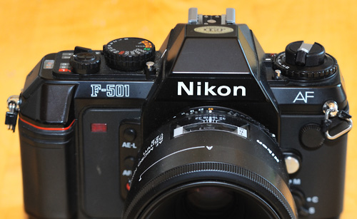 New era: Nikon F-501 with a first generation screwdriver AF lens (AF Micro-Nikkor 55mm f/2.8). |