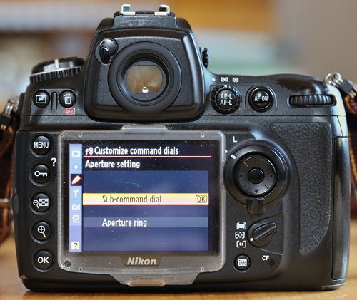 If you use a G type lens without an aperture ring, you must control the aperture from the camera. With a non-CPU lens you must set the aperture on the lens. For lenses with both, a CPU interface and an aperture ring (the majority of the lenses I use daily), the modern DSLRs have a customizing option: You can decide either to use a command dial of the camera or to use the lens' aperture ring. Of course, I have set my bodies to 'command dial'.