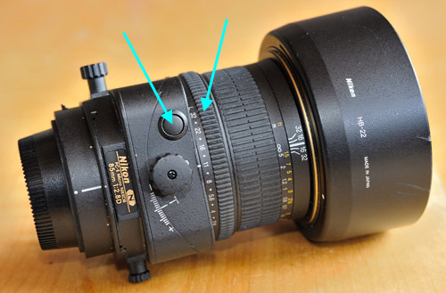 The PC-E lenses have an aperture ring and a stop-down button. In contrast to the new 800mm lens that makes it possible to use these lenses in conjunction with some older cameras. |