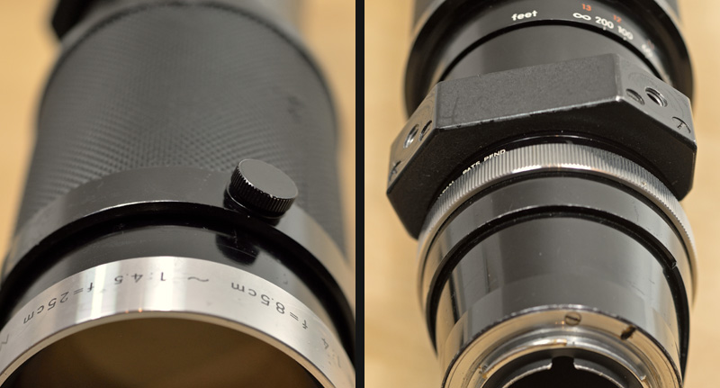 As the test shots above show, the 8.5-25cm is poor in terms of image quality. Short summary: use it only in the range of 105~200mm and never wide open! Because my notes say that the first sample was a bit better, there might be some sample variation, too. Nevertheless, this early zoom is a beautifully crafted lens and a nice part for a collector.