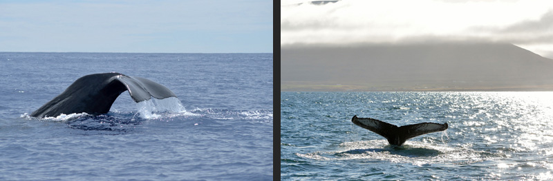 Two shots at F8: a sperm whale (Azores, 70-210mm f/4) and a humpback whale (Iceland, 80-200mm f/2.8). |