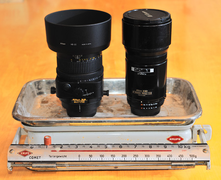 My preferred alternative to the 80-200mm for landscape photography (PC-E 85mm + AF 180mm f/2.8) weighs only 110 grams more! |