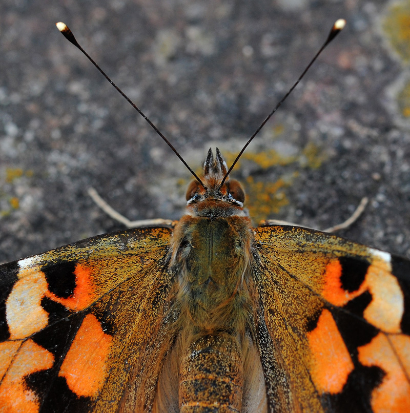 Detail of a butterfly. Nikon D700 @ISO800, 80-200mm@170mm + 6T closeup lens, F10, 1/200 sec., hand-held. |