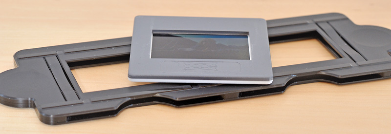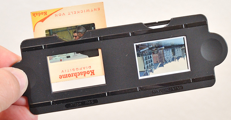 A Kodachrome slide from the 60s and a Y2K slide in plastic mount from the Fujichrome lab. The FH-5 works fine with these slide mounts. |