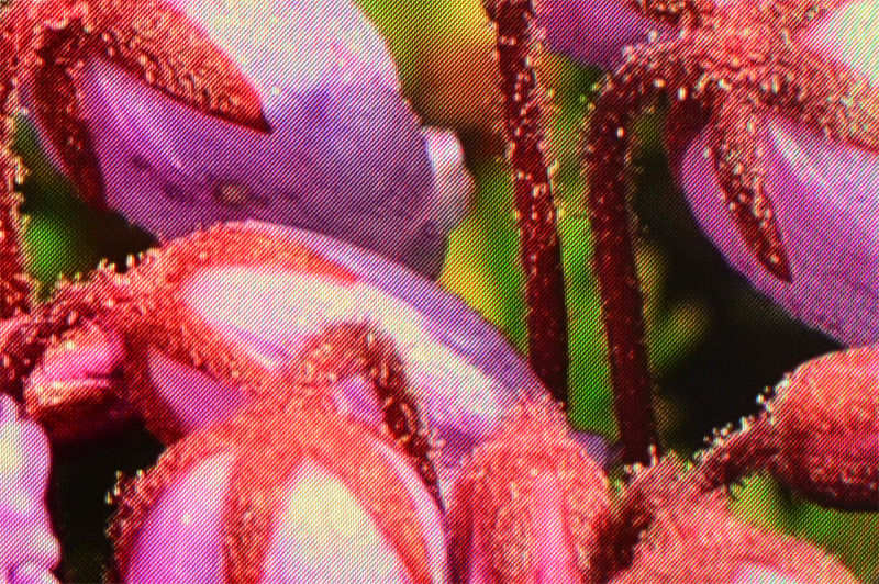 I took this photo with my Df and 50mm lens from about 50 cm away from the surface of the screen. The original size is 27cm x 18 cm. Below is a 50% crop from the same image. The original size is 88mm x 58mm. |