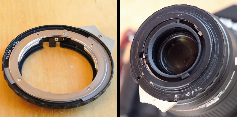My EOS adapter for Nikon G. The big lever is for setting the aperture. |